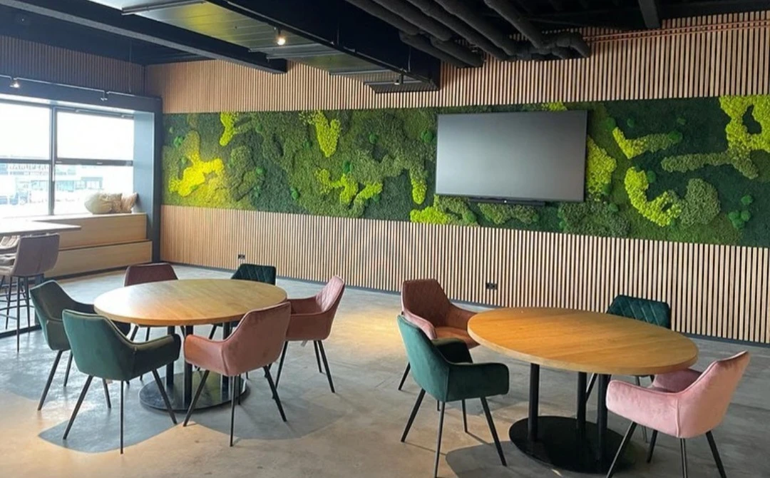 Stoere bedrijfskantine.... Bij superflora hebben ze die. hier hebben wij alle wanden voorzijn van glasvlies en daarna in de rijks groene kleur van Sikkens.