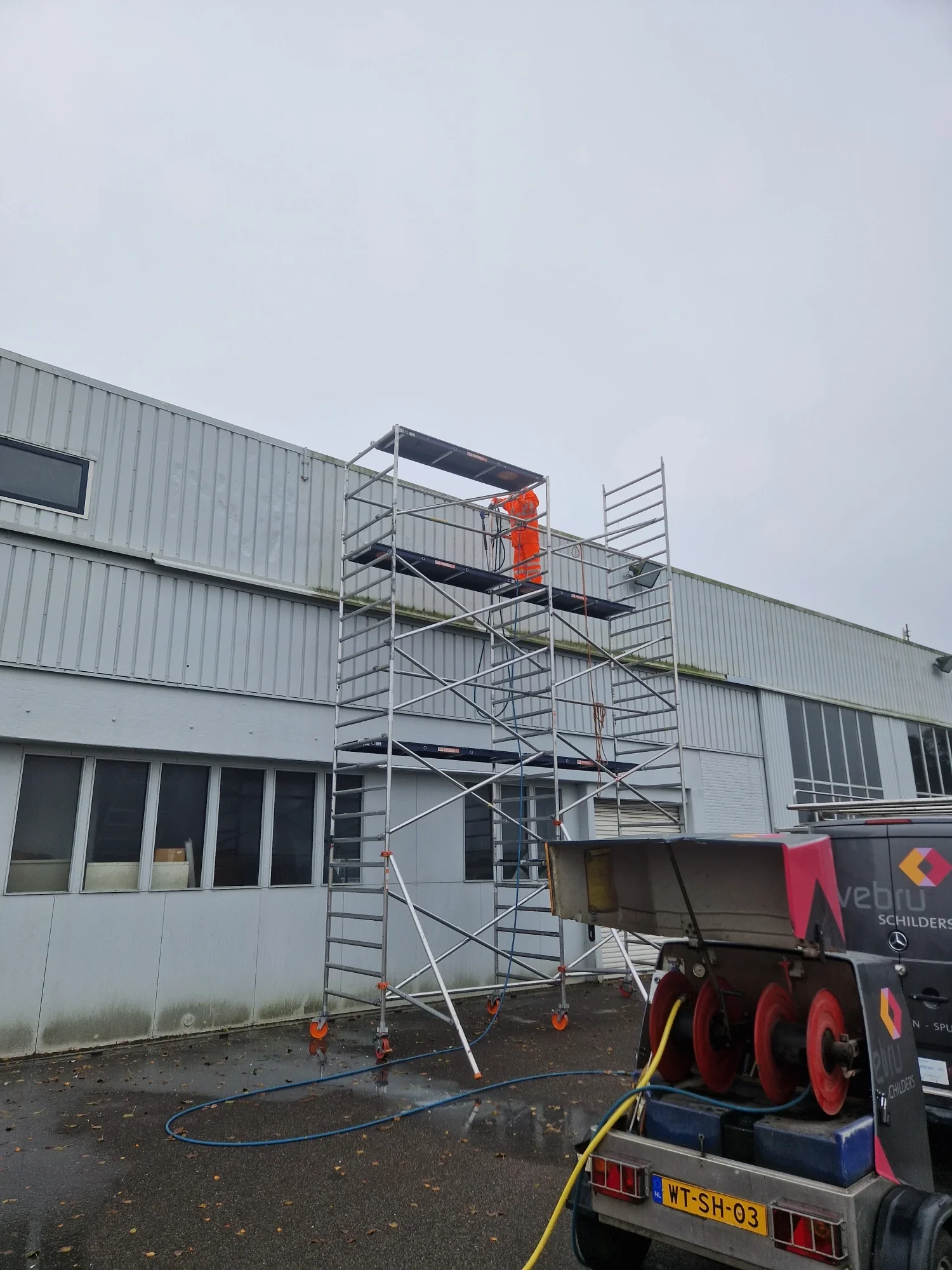 Toegepaste dienst: spuiten van de gehele gevel .